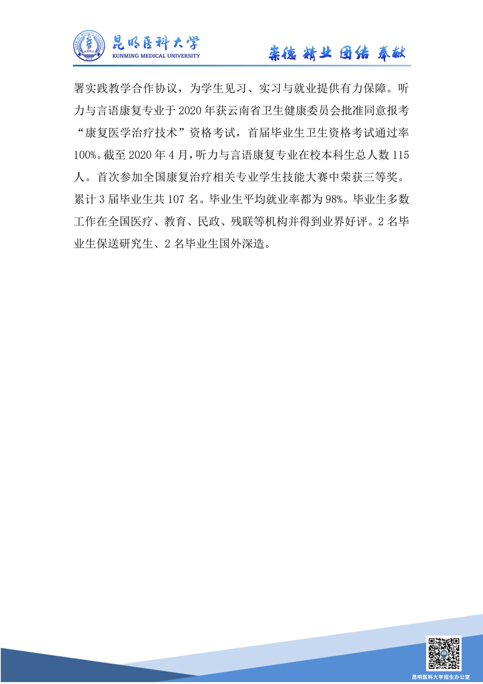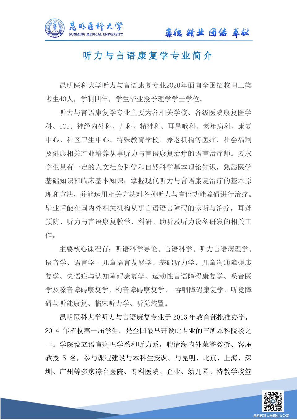 昆明醫(yī)科大學(xué)2020年招生專業(yè)介紹--聽力與言語康復(fù)