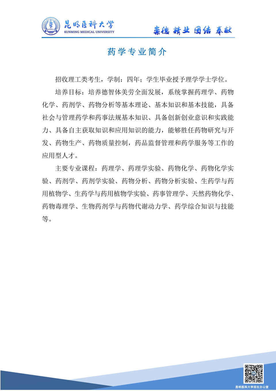 昆明醫(yī)科大學(xué)2020年招生專業(yè)介紹--藥學(xué)