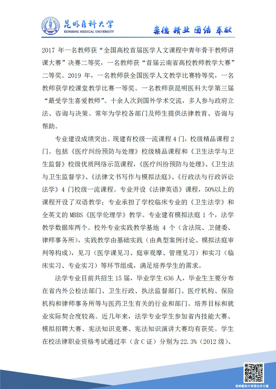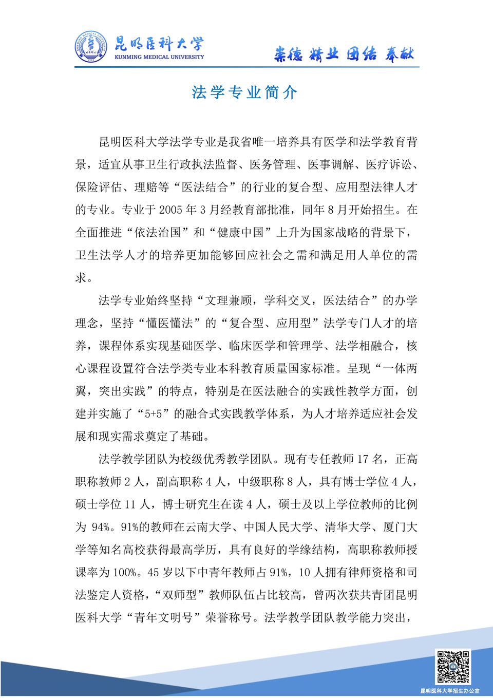 昆明醫(yī)科大學2020年招生專業(yè)介紹--法學