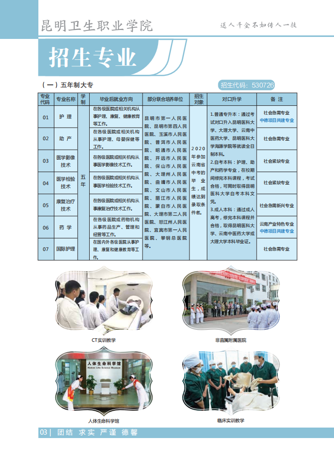 昆明衛(wèi)生職業(yè)學(xué)院2020年五年制招生簡章