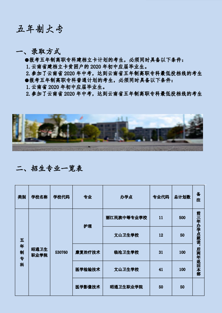 2020年昭通衛(wèi)生職業(yè)學(xué)院招生簡章(五年制)