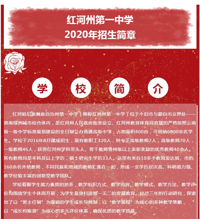 紅河州第一中學(xué)2020年招生簡(jiǎn)章