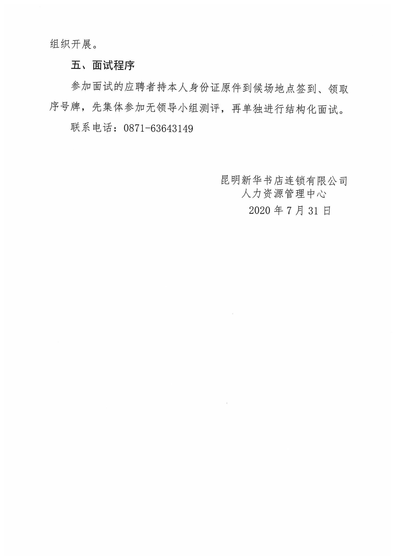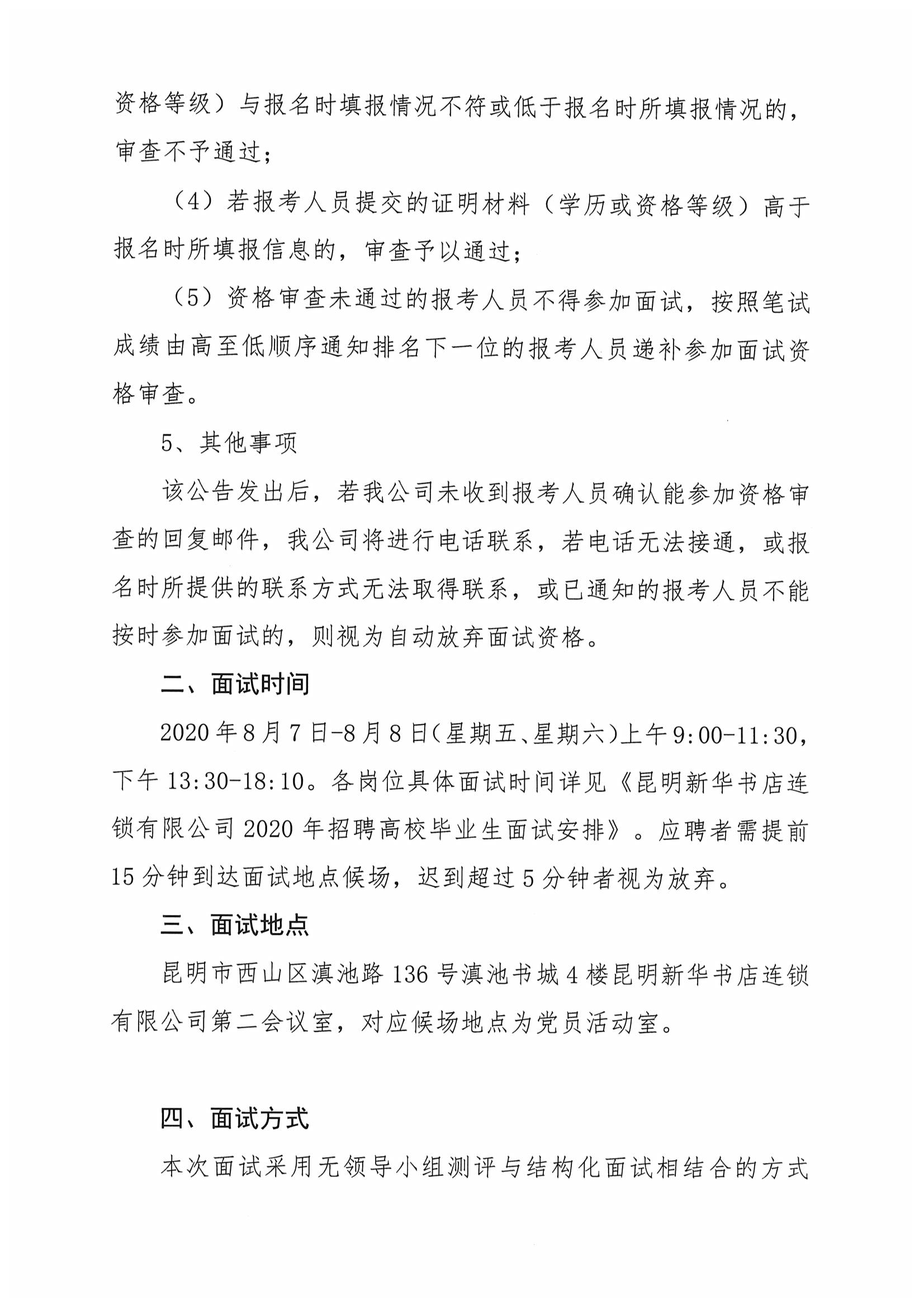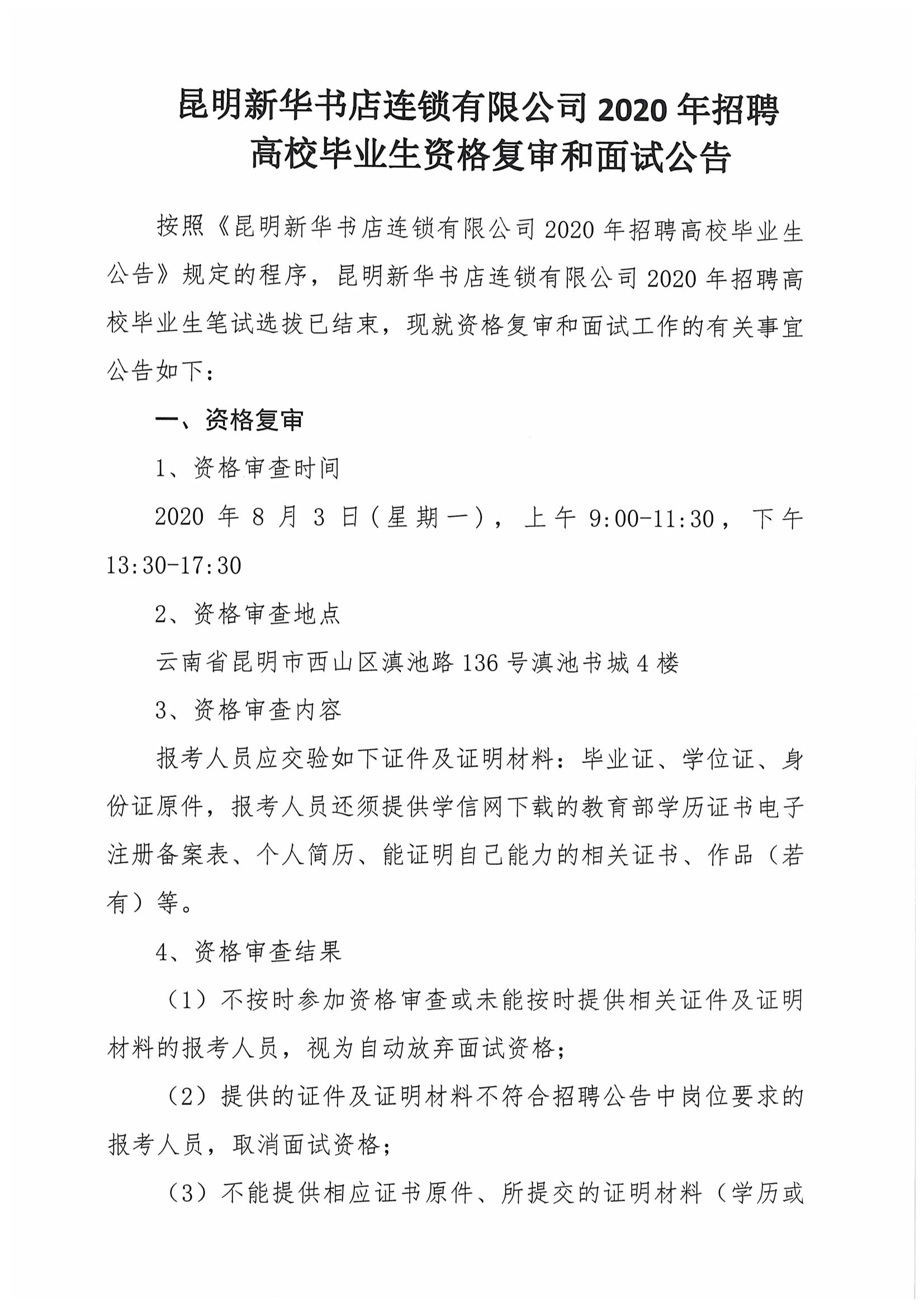 昆明新華書(shū)店連鎖有限公司2020年招聘資格復(fù)審和面試公告