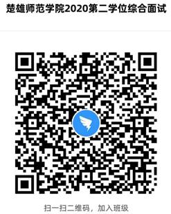 1.請已經(jīng)通過資格審核的考生下載釘釘APP并于2020年8月2日中午12:00前使用釘釘APP掃描以下二維碼加入楚雄師范學(xué)院2020年專業(yè)綜合面試群。加入群的時(shí)候請以“姓名+手機(jī)號”的格式命名。請注意,手機(jī)號必須使用報(bào)名申請表上填寫的號碼。考生需提前準(zhǔn)備好面試需要的場地和設(shè)備,確保網(wǎng)絡(luò)暢通。