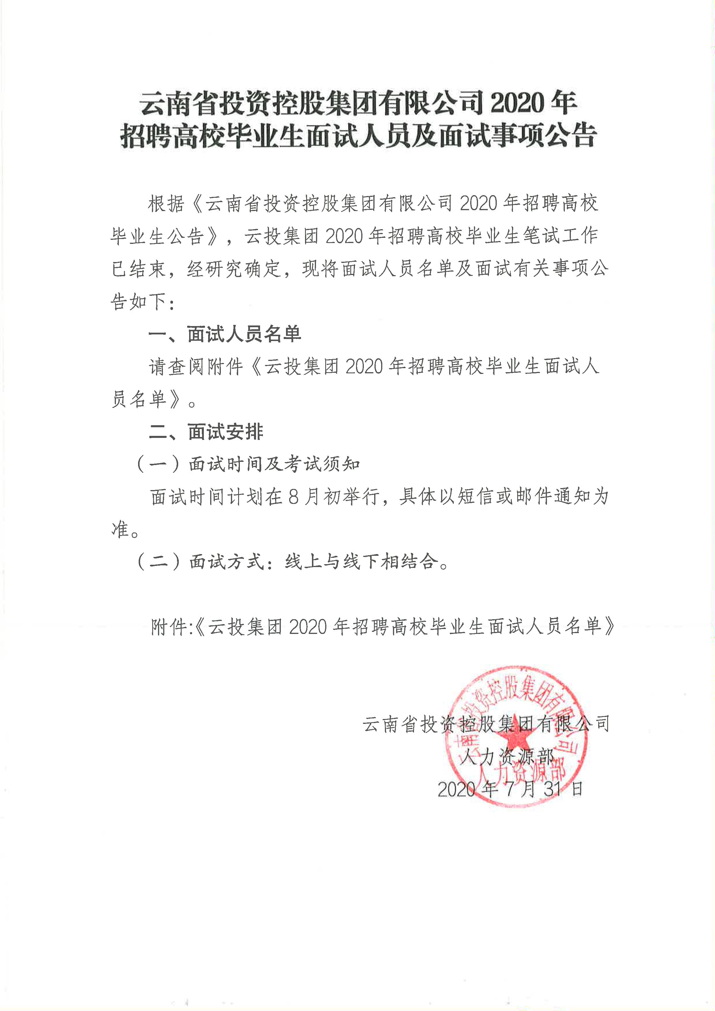 云投集團2020年招聘高校畢業(yè)生面試人員及面試事項公告