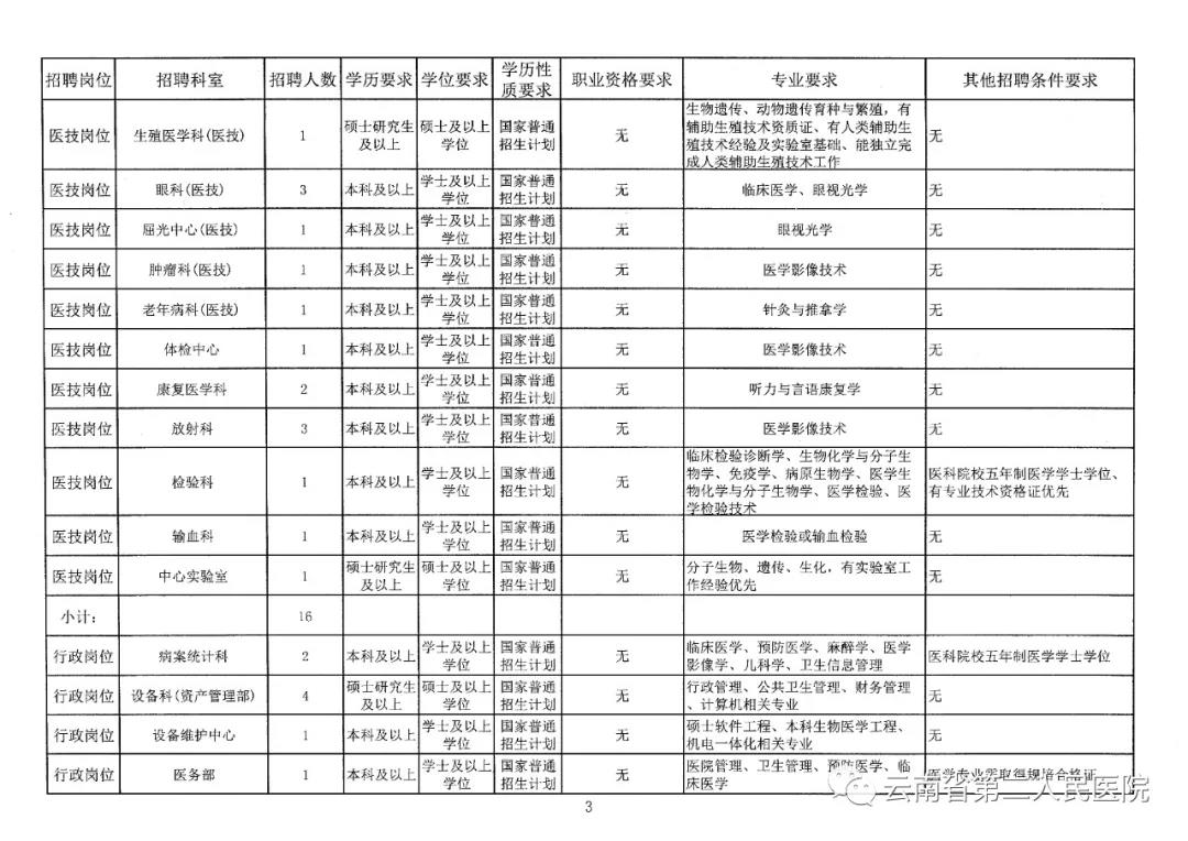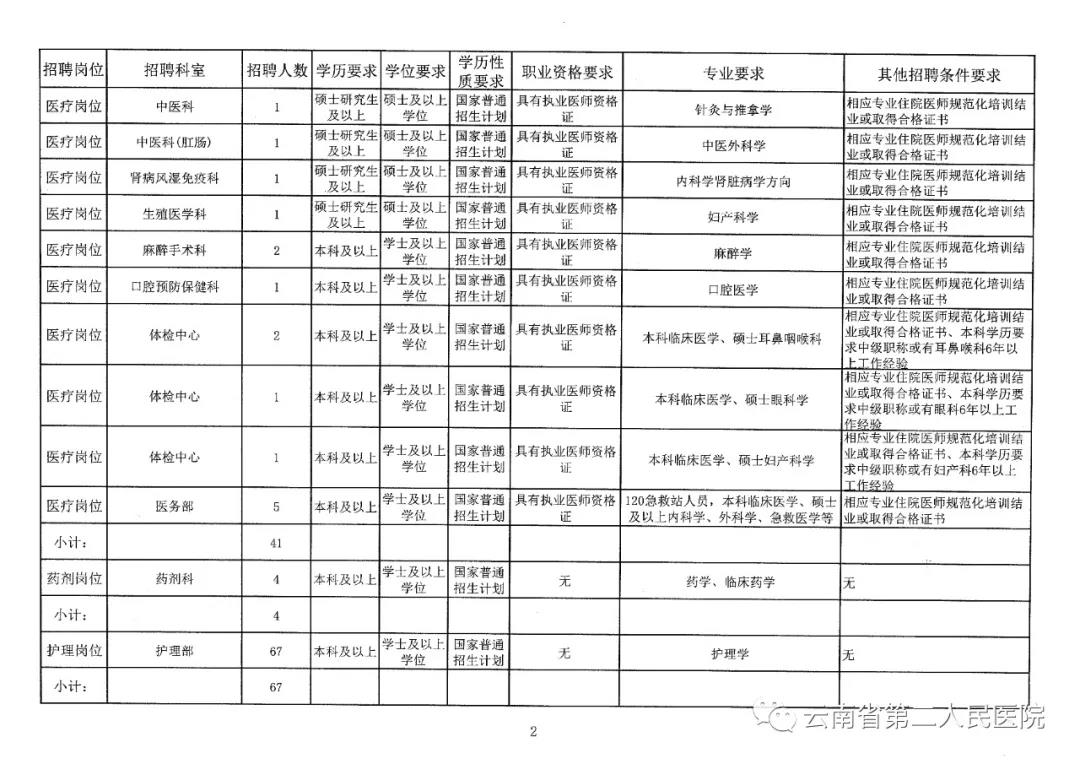 (一)云南省第二人民醫(yī)院2020年非事業(yè)編制工作人員公開招聘崗位及要求