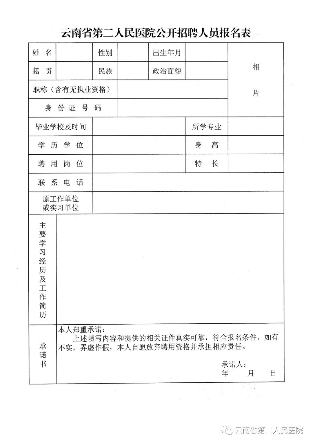 (二)云南省第二人民醫(yī)院公開招聘人員報名表