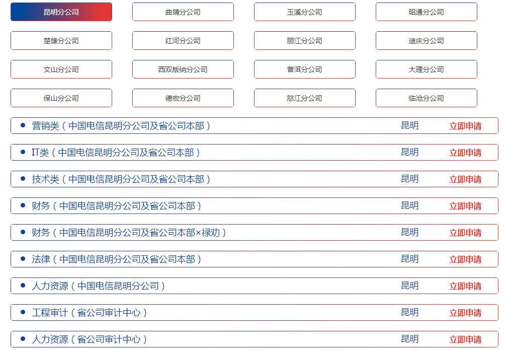 請(qǐng)登錄中國(guó)電信集團(tuán)有限公司網(wǎng)站——“招賢納士”專欄(http://www.chinatelecom.com.cn/zp/)查看招聘信息,并進(jìn)行網(wǎng)上申請(qǐng)。各分子公司的具體崗位報(bào)名截止日期略有不同,具體情況詳見(jiàn)各分子公司公告。