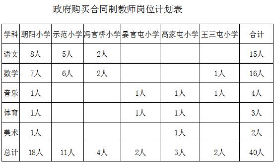 根據(jù)教育部、省教育廳和曲靖市人民政府關(guān)于全面消除大班額的有關(guān)文件精神,結(jié)合我區(qū)小學(xué)實(shí)際情況,公開招聘(編制外)政府購買合同制教師40名,經(jīng)曲靖經(jīng)濟(jì)技術(shù)開發(fā)區(qū)社會事業(yè)局公開招聘教師領(lǐng)導(dǎo)小組研究制定本方案?,F(xiàn)公告如下: