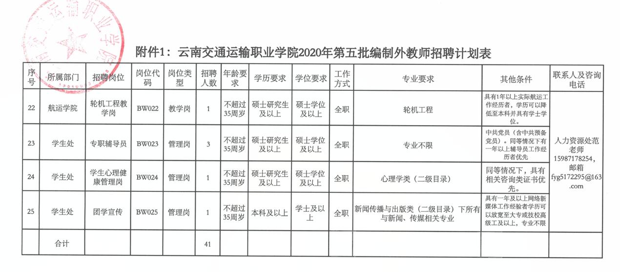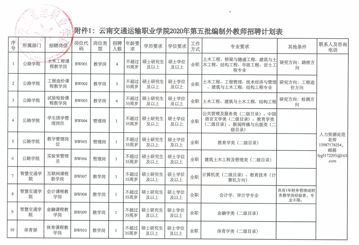 附件1:云南交通運(yùn)輸職業(yè)學(xué)院2020年第五批編制外教師招聘計(jì)劃表【蓋章版】.pdf