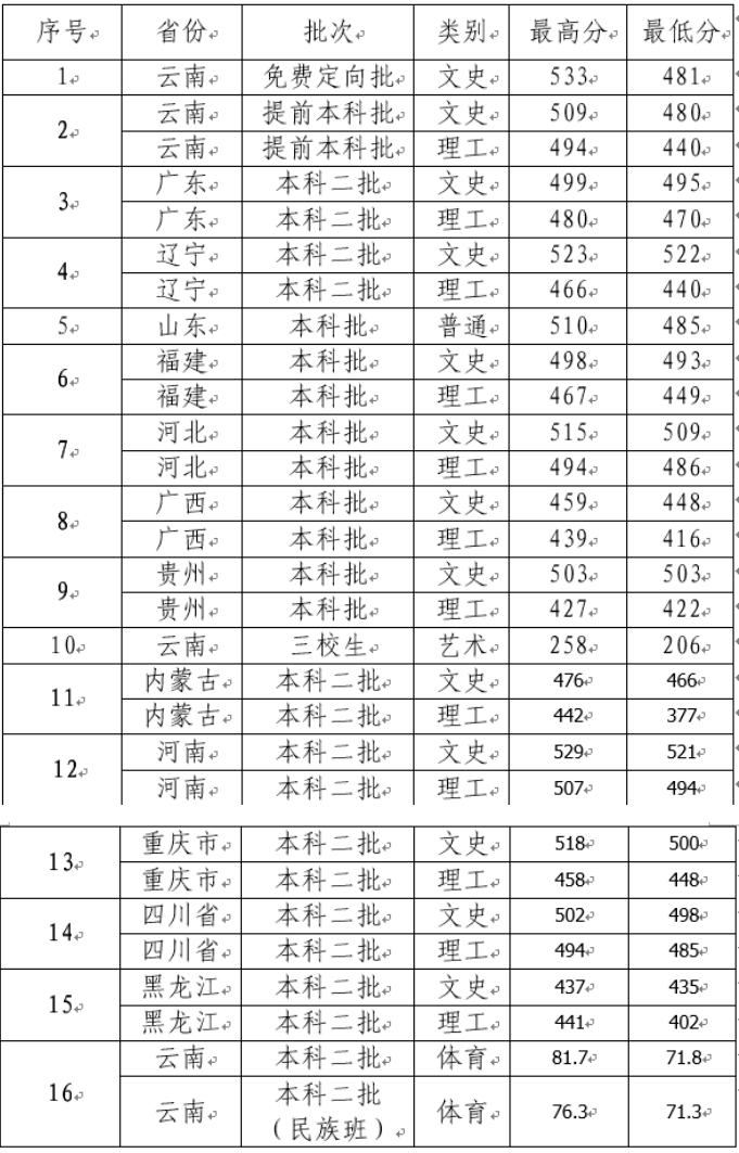 截止到9月1日17時(shí),滇西應(yīng)用技術(shù)大學(xué)已完成云南省免費(fèi)定向批次、云南省提前本科批次和廣東省、遼寧省、山東省、福建省、河北省、廣西壯族自治區(qū)、貴州省本科批次云南省三校生本科批次、內(nèi)蒙古自治區(qū)、河南省、重慶市、四川省、黑龍江省和云南省體育類(lèi)本科批次錄取。