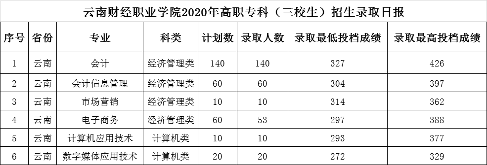 云南財經(jīng)職業(yè)學院9月2日錄取日報
