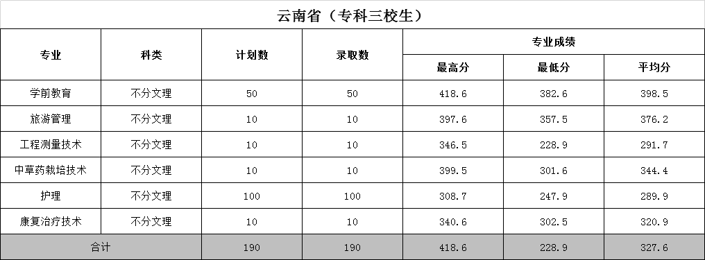 文山學(xué)院2020年招生錄取分?jǐn)?shù)統(tǒng)計(jì)三(預(yù)科升學(xué))