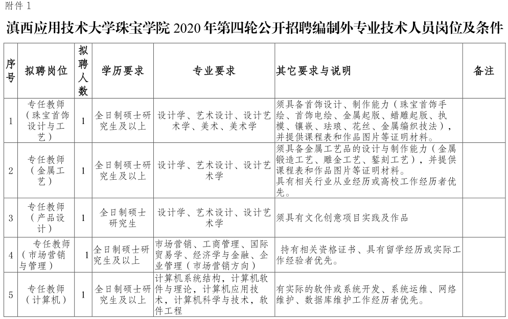 1.滇西應(yīng)用技術(shù)大學(xué)珠寶學(xué)院2020年第四輪公開(kāi)招聘編制外專業(yè)技術(shù)人員崗位及條件;.pdf