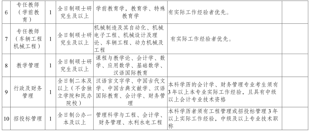 招聘崗位:專任教師7名、管理崗位3名。