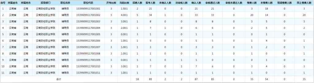 云南財(cái)經(jīng)職業(yè)學(xué)院2020年第二批招聘報(bào)名統(tǒng)計(jì)(截止9月25日17:00)