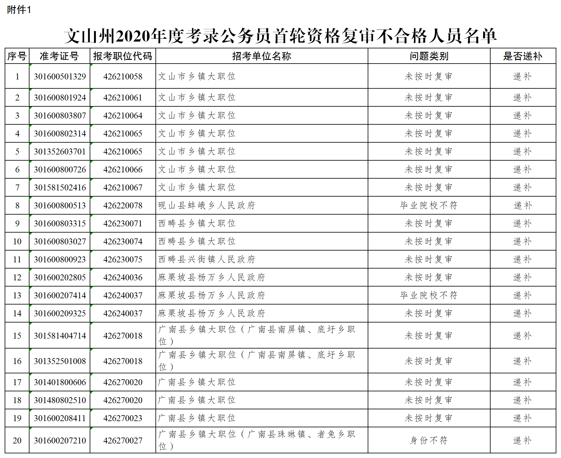 附件:1.文山州2020年度考錄公務(wù)員首輪資格復(fù)審不合格人員名單